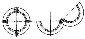 5.2. Для обеспечения геометрических размеров сечения и повышения устойчивости при центрифугировании стального цилиндра его оснащают съемными бандажами с их равномерным распределением по длине цилиндра в обе стороны, начиная от середины.