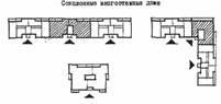 2.6. При организации специализированных детских городков (деревень) планировочная структура может строиться как из отдельно стоящих одноквартирных семейных домов, так и из блокированных, состоящих из двух и более квартир. Для создания выразительного архитектурно-планировочного решения жилых групп рекомендуется проектировать разнообразные системы блокировки: линейную, уступами со сдвигом, крестообразную. С этой целью планировочные схемы блок-квартир должны иметь соответствующее размещение окон и входов. В отдельных случаях блокированные жилые дома могут быть объединены общей планировочной структурой с общественными зданиями различного назначения.