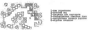 2.8. Все детские городки должны иметь четкое зонирование территории: жилая зона, зона общественно-административных зданий, учебно-спортивная, культурно-развлекательная и хозяйственная. Состав помещений каждой зоны может быть различен и зависит от численности проживающих в городке, педагогической концепции и местных условий.
