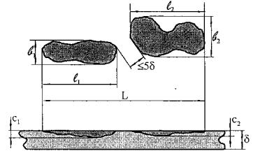 Если расстояние между соседними дефектами не превышает 5δ (пять толщин стенки трубы), то эти дефекты должны рассматриваться как один объединенный дефект (рис.2) с глубиной равной максимальной глубине одного из дефектов.
