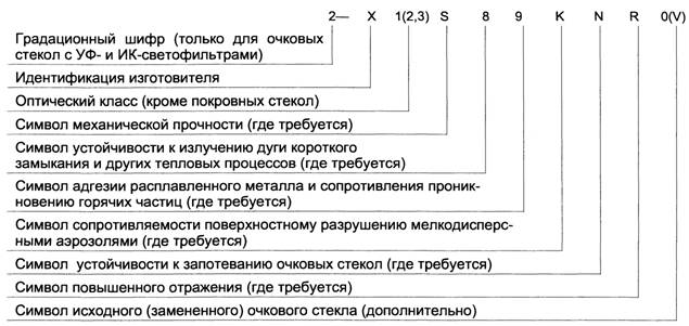 9.4 Маркировка средств защиты глаз для случаев, когда оправы и очковое стекло представляют единый блок |
