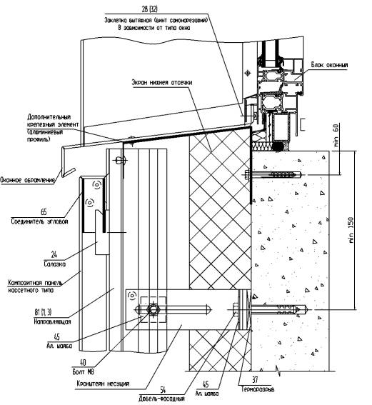 Конструкция навесной фасадной системы с воздушным зазором для облицовки кассетами из алюминиево-композитных панелей
