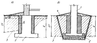 Рис. 17. Схема предохранения фундамента от выпучивания посредством устройства рубашки из гидрофобного грунта