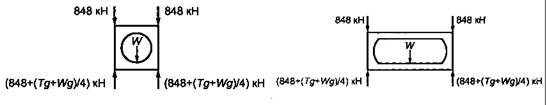 Б.2.1 Каждая пара площадок, передающих нагрузки, расположенная на торцевом поперечном элементе, должна выдерживать нагрузки не менее R, т.е. нагрузки, которые могут возникнуть при установке контейнера на такое транспортное средство, когда контейнер не опирается на свои угловые фитинги.