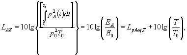 где p2A(t) - квадрат мгновенного корректированного по частотной характеристике А (далее - корректированное по А) звукового давления как функция текущего времени t;