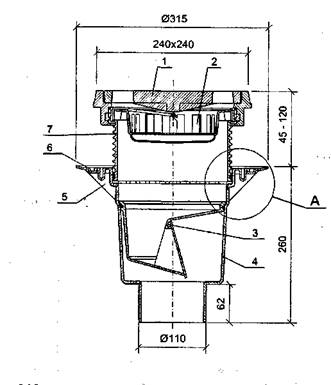4.12 Воронки для стилобатов имеют чугунную решетку либо в подрамнике из полипропилена (максимальная нагрузка до 7 тс), либо в подрамнике из чугуна (максимальная нагрузка до 15 тс) (см. табл. 2.3).