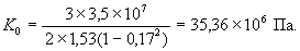 α = 24×5×106×4×1,1×74(6×3,142×1,44+3×3,142×7-16×3,14×1,44-28×7) = 3028982,6·107 Н·м2;