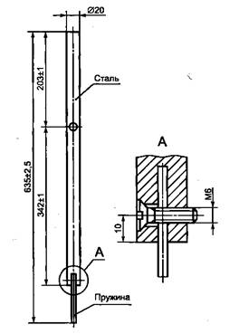 На рисунке Г.1 приведен пример испытательного устройства для испытания на маятниковом копре для энергии, не превышающий 1 Дж. Ударник соответствует 4.2.1 и рисунку Г.2. Плечо изготовлено из стальной трубки с наружным диаметром 9 мм (номинальным) и толщиной стенки 0,5 мм (номинальной).