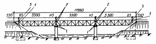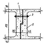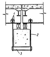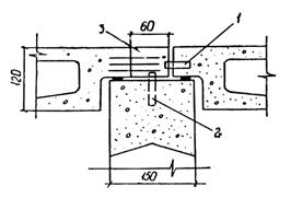 1 - ограничитель относительных перемещений концов пролетных строений; 2 - ограничитель перемещении балок относительно опоры; 3 - бетон омоноличивании