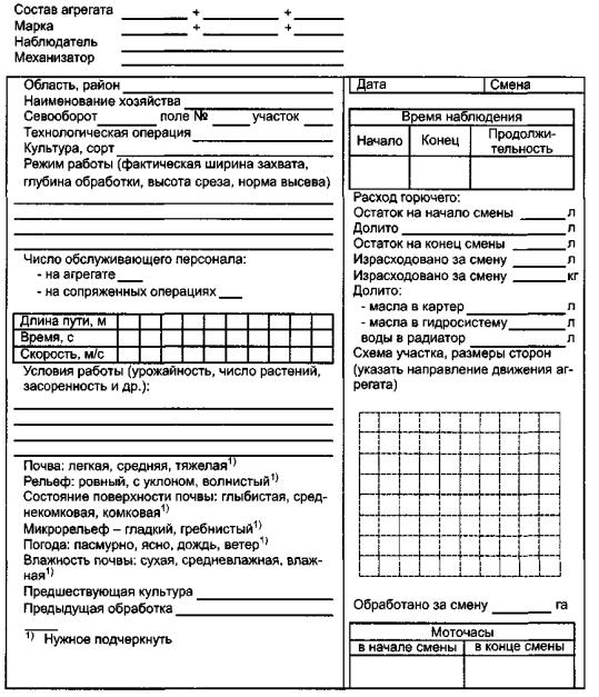 4.4 Во время контрольной смены воспроизводят режим работы машинно-тракторного агрегата, установленный в ТЗ, и определяют эксплуатационно-технологические показатели и показатели качества выполнения технологического процесса по номенклатуре показателей, предусмотренной ТЗ.