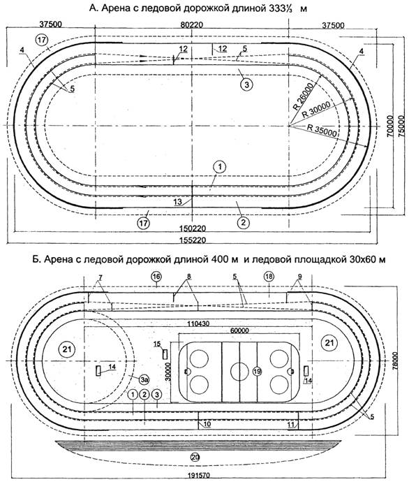 3.1.1. Строительные размеры, площади и пропускная способность катков с искусственным льдом должны приниматься в соответствии с правилами по организации учебно-тренировочных занятий и проведения спортивных соревнований.