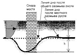 Рис. 2.1. Схема местного размыва русла у опоры эксплуатируемого моста