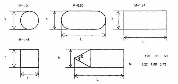 2.5. Коэффициент формы М массивной опоры и фундамента с постоянной формой поперечного сечения в зависимости от планового очертания принимают по рис. 2.4.