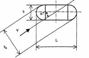 bа/b = 1 + (L/b - 1)·sin α - проекция ширины опоры на плоскость, перпендикулярную направлению потока, м;