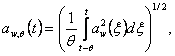 3.1.5.1 среднеквадратичное значение корректированного ускорения aw: Усредненная по времени поступательная или угловая вибрация, определяемая формулой