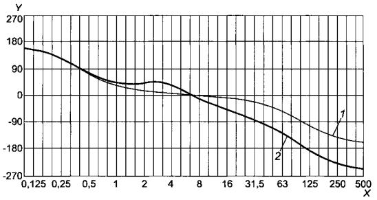 j) сгладить полученные выборочные значения непрерывной кривой, зафиксировав первую точку сформированной общей последовательности [значение запаздывания по фазе для основного тона низшей частоты первой последовательности, полученной в результате выполнения шага f)] и подбирая соответствующим образом значения запаздывания по фазе для основных тонов низшей частоты других четырех последовательностей [полученных в результате выполнения шага h)], например с помощью рекуррентной процедуры или графическим методом. Тогда экспериментально полученная зависимость запаздывания по фазе от частоты будет определена с точностью до некоторого постоянного слагаемого;