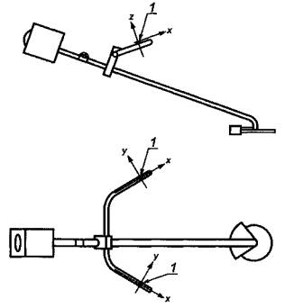 Место установки и ориентация измерительных осей акселерометра - в соответствии с рисунком В.1 или В.2 в зависимости от конструкции рукояток.