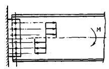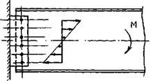 4.1.1. При действии продольной силы, проходящей через центе тяжести соединения, распределение этой силы между болтами следует принимать равномерным. При действии на соединение изгибающего момента М распределение усилий между болтами следует принимать равномерным (при прямоугольных эпюрах распределения усилий между болтами, рис. 1).