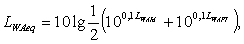 Эквивалентный уровень звука излучения LpAeq, дБА рассчитывают по формуле
