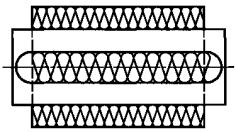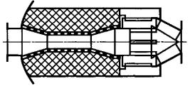 В концевом поглощающем устройстве, показанном на рисунке G.1, аэродинамический просвет рупора определяется внутренней оболочкой, выполненной из перфорированного металлического листа с коэффициентом перфорации около 35 %. Объем между перфорированным листом и цилиндрической секцией оболочки рупора заполняется пористым звукопоглощающим материалом.