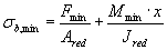 Если σbt,max > 0, продолжают расчет в предположении работы железобетона без трещин, иначе проверяют условие | σbt,max| ≤ Rbt,mon в случае невыполнения этого условия вычисляют положение нулевой линии, площадь и момент инерции приведенного сечения с учетом образования трещин.