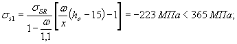 максимальные напряжения в бетоне и арматуре не должны превосходить соответствующих расчетных сопротивлений Rb,mon, Rs.mon, умноженных на коэффициенты условий работы γb1 и γs3; при наличии сварных соединений арматуры - также на коэффициент условий работы γs4. Значения коэффициентов следует принимать по таблицам 16, 25, 26[1].