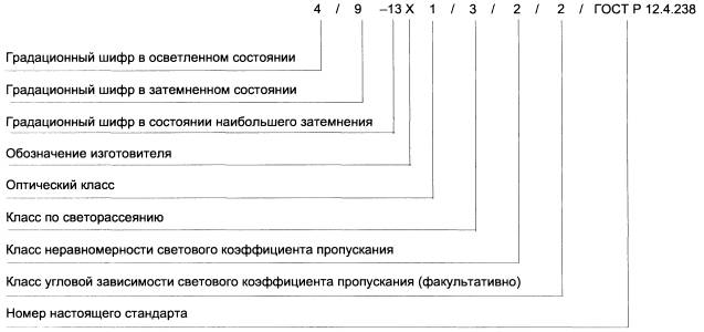 3.6 градационный шифр светофильтра в состоянии наибольшего (максимального) затемнения (darkest state scale number): Градационный шифр светофильтра, соответствующий минимальному световому коэффициенту пропускания τ2, заявленному изготовителем (см. рисунок 1).