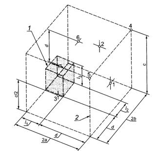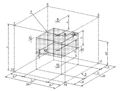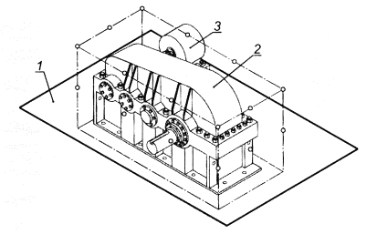 Основные точки измерений показаны на рисунках 5, 7, 9 и 11 или может быть достаточна даже более простая сеть точек, если установлено при испытаниях данного типа редуктора, что звуковое поле существенно равномерное, так что измеренный уровень шума больше или равен значению, определенному по полному числу точек».