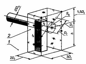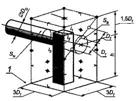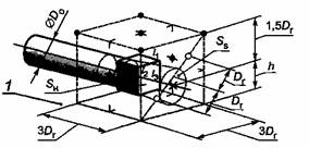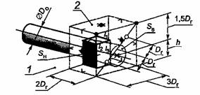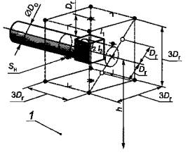 где DN - номинальный диаметр входа вентилятора в звукоотражающей плоскости, м. (см. рисунки 5 и 6).
