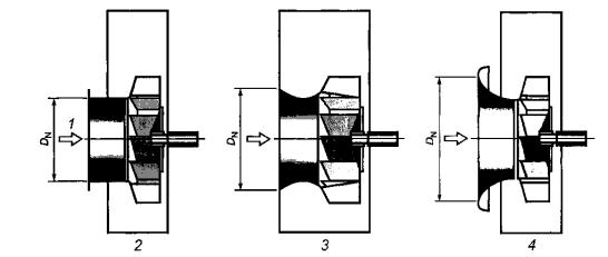 Рисунок 6 - Номинальный диаметр входа вентилятора в звукоотражающей плоскости DN для различных конструкций вентилятора