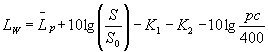 Уровень звуковой мощности Lw, дБ, в каждой полосе частот диапазона измерений рассчитывают по формуле