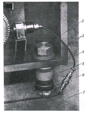 вибровозбудителя; 5 - силоизмерительный датчик; 6 - закладной крепежный