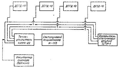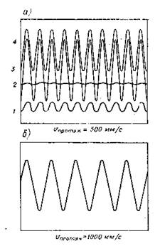 Примеры осциллограмм, полученных во время измерений, даны на рис. П2, а и П2, б. На рис. П2, а показана одновременная запись независимых показаний по каждому из четырех датчиков ДСТД-10 со своими масштабами, на рис. П2, б - запись результирующего сигнала после автоматического суммирования показаний всех четырех датчиков.