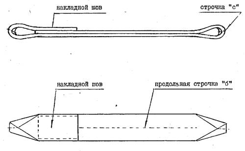 2.23. При приемке контролируется: внешний вид и конструкция изделия, размеры, конструкция швов, количество и качество проложенных строчек на накладном шве, размеры накладного шва, наличие строчек "а", "б", "с", марка текстильного материала, использованные швейные нитки, прочность накладного шва,