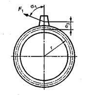 α1 - угол между направлением усилия и вертикалью к стенке обечайки,...°;