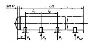 Li - расстояние между двумя соседними седловыми опорами, мм;