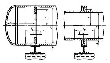 а - длина выступающей цилиндрической части сосуда, включая отбортовку днища, мм;