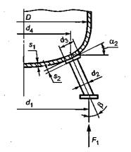 где d4 - диаметр сечения, проходящего через середину линии контакта опоры с днищем, вычисляют по формуле