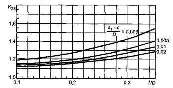 9.4.8 Коэффициенты К22 и К23 определяют по графикам, приведенным на рисунках 15 и 16 соответственно.