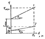 угол внутреннего трения и сцепление мерзлого и оттаявшего грунта;