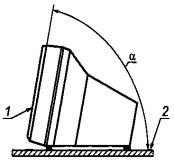3.1.9 угол наклона экрана α (screen tilt angle): Угол, образованный пересечением плоскости, касательной к поверхности экрана в его центре, и горизонтальной плоскостью, выраженный в угловых градусах (см. рисунок 1).