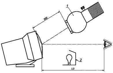 Используя фотометр с апертурой 2°, устанавливают на его шкале яркость LA(ПР), равную 2000 кд/м2, с помощью излучения центральной части протяженного источника.