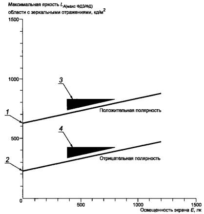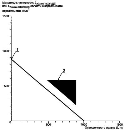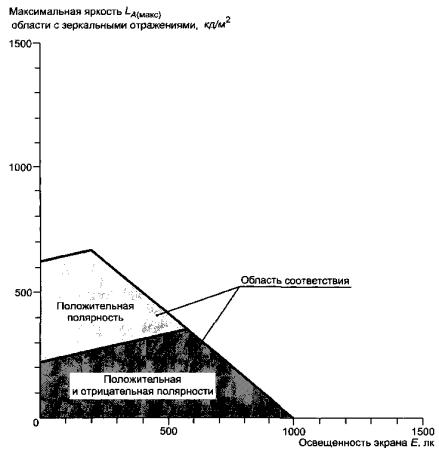 LД, LЗ - яркости отраженного излучения (соответственно диффузная и зеркальная), необходимые при принятии решения о соответствии ВДТ требованиям настоящего стандарта. Значения яркостей определяют расчетом, основанным на измеренных значениях показателя яркости экрана ВДТ с учетом внешней освещенности;