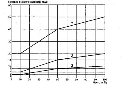 Предельное значение v при кратковременной вибрации определяют для вертикальной составляющей пикового значения скорости по формуле