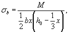 Напряжения в вершине сжатой зоны бетона определяются по формуле, принимая момент относительно растянутой арматуры