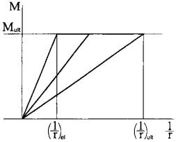 Граничное значение кривизны и жесткости для горизонтального участка диаграммы бетона получается при εb,pl = εb,el и εb,pl = εb,ult. Исходя из этого может быть представлена диаграмма «момент-кривизна», которая описывает деформированное состояние железобетонного элемента в целом.