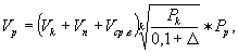 В.5.5.3 Емкость камеры Vk (м3) определяется по действительным размерам проточной части, заполняемой сжатым воздухом при отжатии воды до отметки уровня отжатия. Для сравнения объемов одной камеры при проведении серии отжатий можно пользоваться формулой для приближенного расчета и не учитывающей емкость камеры рабочего колеса турбины и другие емкости, обусловленные конфигурацией проточной части: