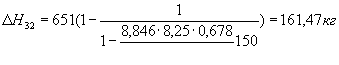 Н2=Н0+ΔНН2-ΔННt=651+869,2-47,16=1473,05 кг