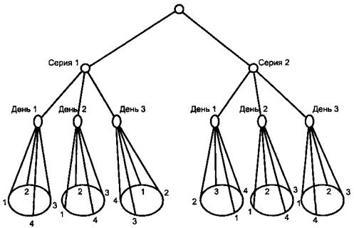 3.9 иерархический эксперимент (nested design): Эксперимент, в соответствии с планом которого каждый уровень (т.е. каждое возможное значение) данного фактора появляется только с одним уровнем любого другого фактора.