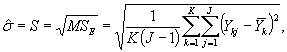 - средний квадрат отклонений для трехуровневого иерархического эксперимента; |